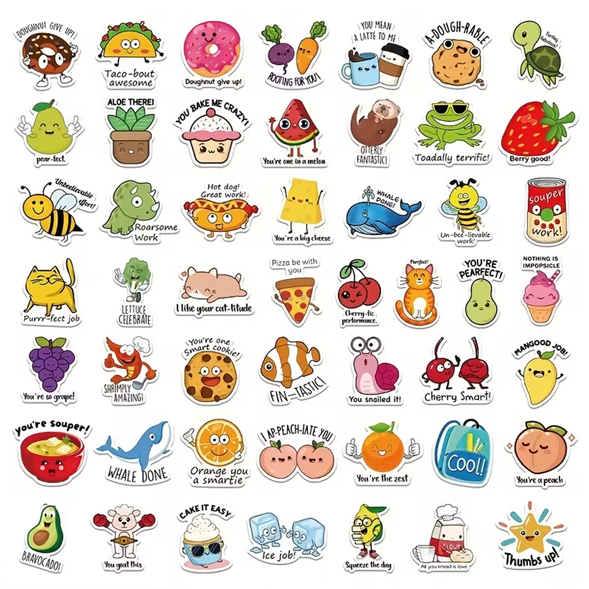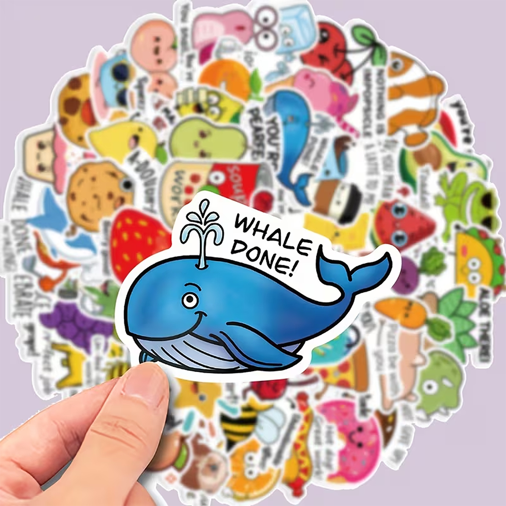 - Enthält 50 verschiedene Sticker mit Tier- und Cartoon-Designs.