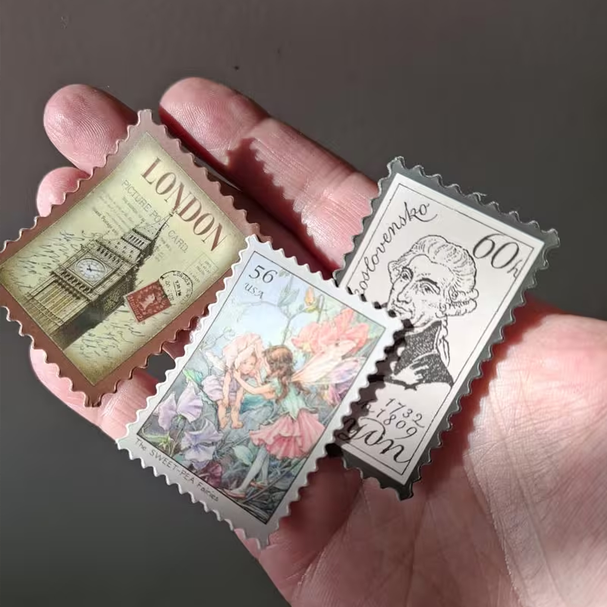 - Gestaltung im klassischen Briefmarken-Look.