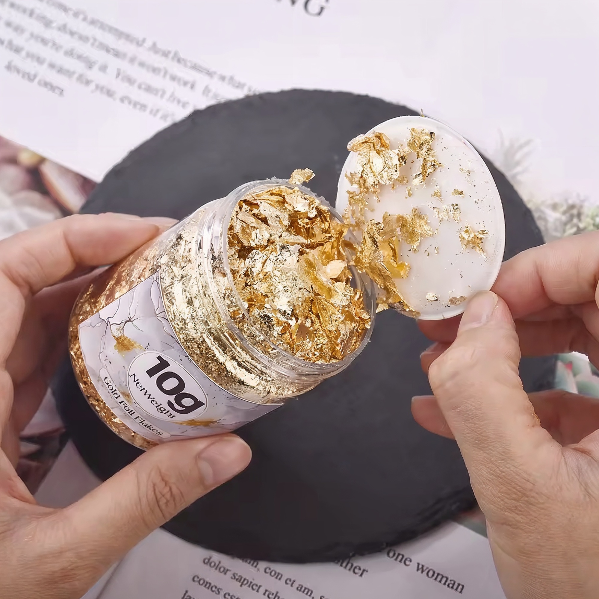 Ob DIY Bastelprojekte oder professionelle Schmuckherstellung – die Goldflocken in Gold, Silber und Roségold sind geeignet für marmorierte Effekte, Glitter-Akzente und individuelle Dekorationsideen im kreativen Bereich.