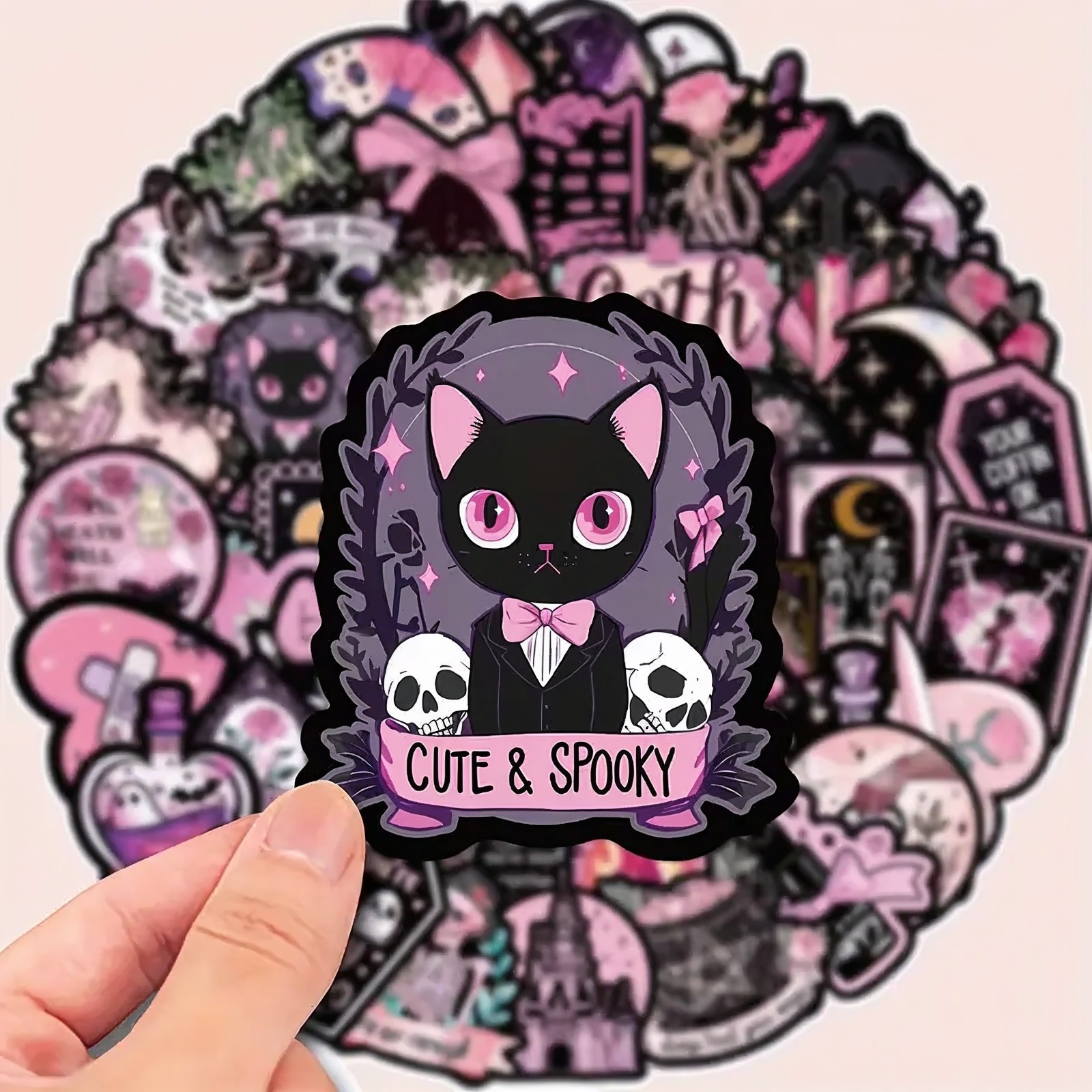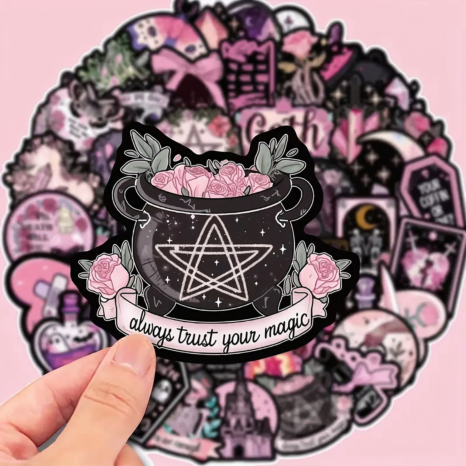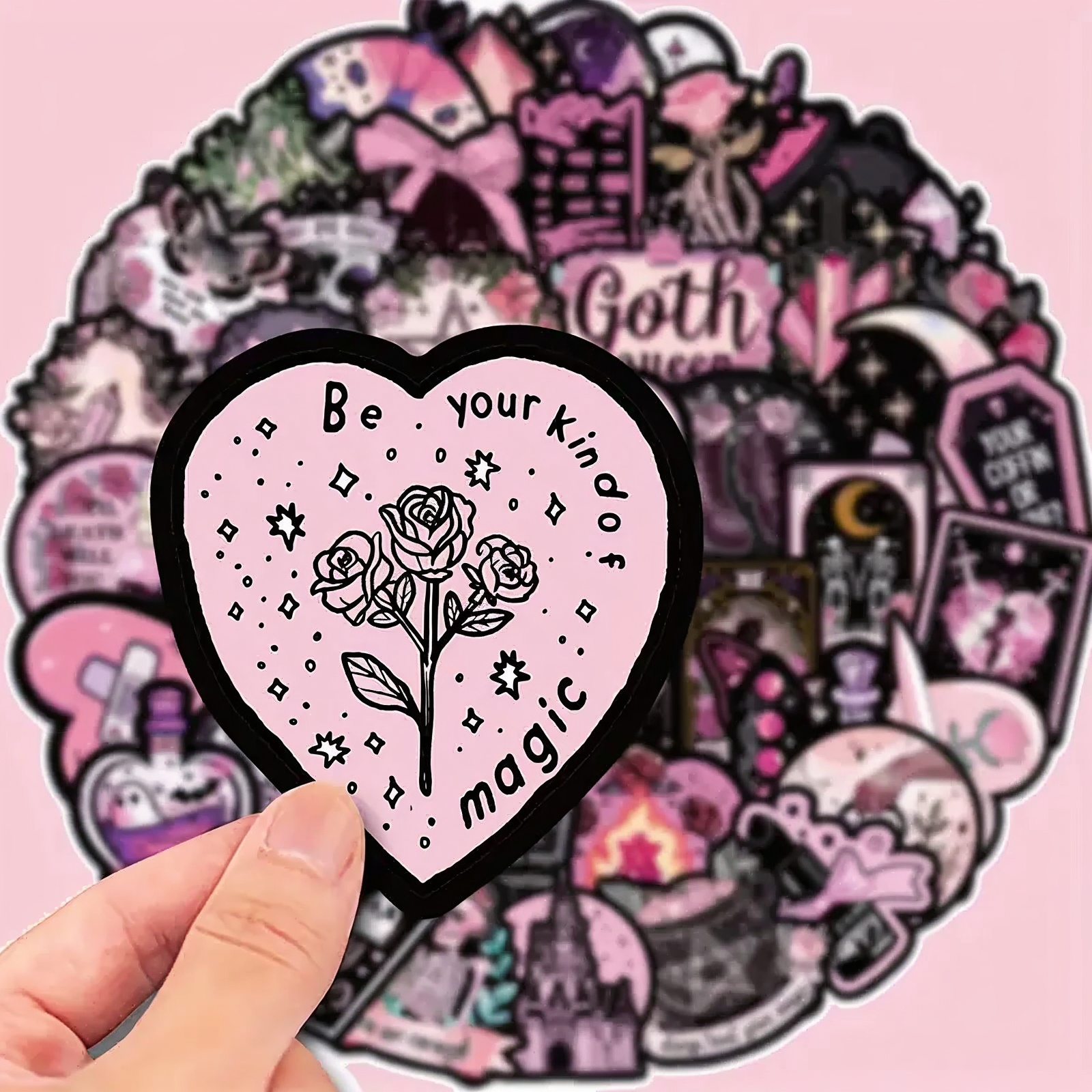 Ideal als kreativ gestaltete Gothic Aufkleber Set in Schwarz und Rosa für vielseitige Anwendungen.