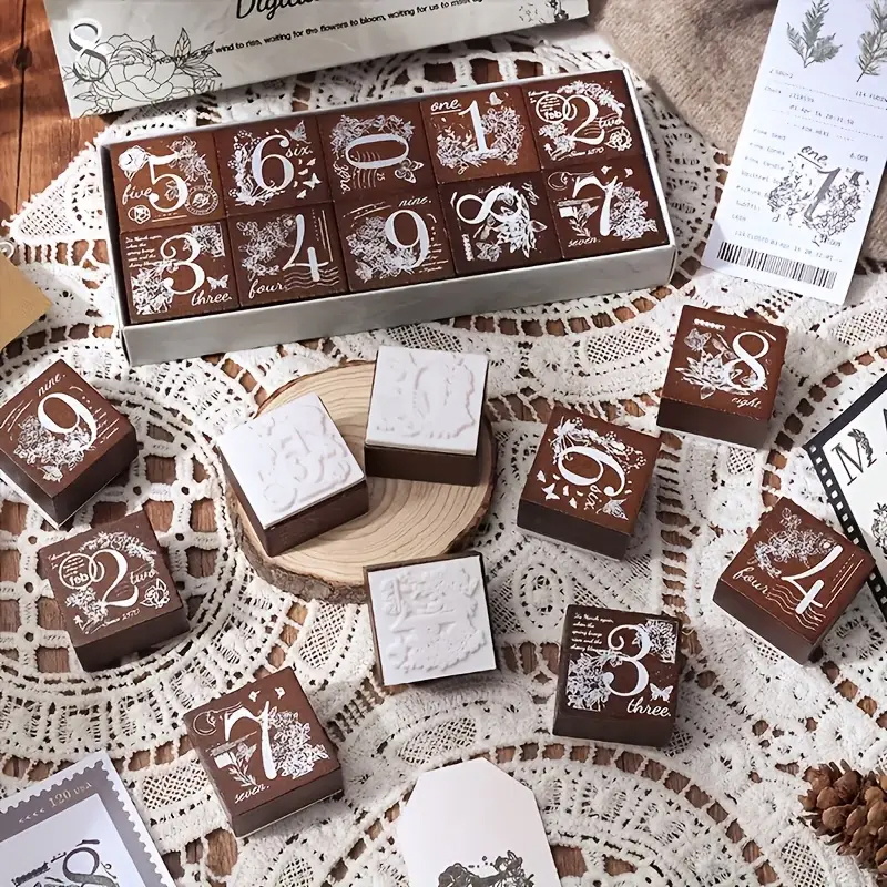 Kreative Gestaltungsmöglichkeiten mit Buchstaben- und Zahlen-Stempeln aus Holz