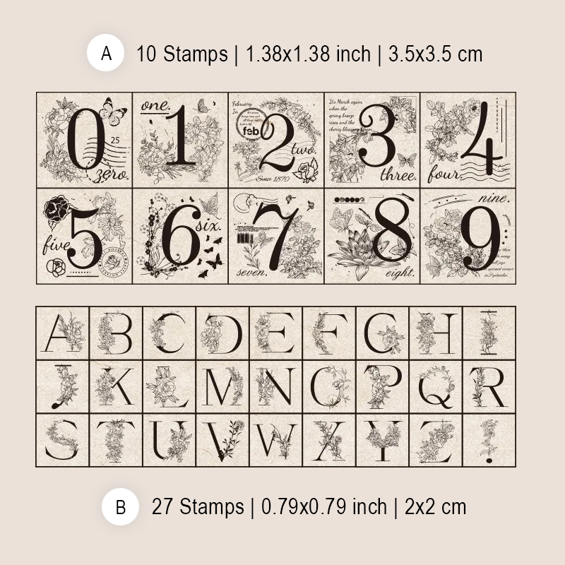 - Inklusive 27 Buchstaben- und 10 Zahlen-Stempeln im Set.