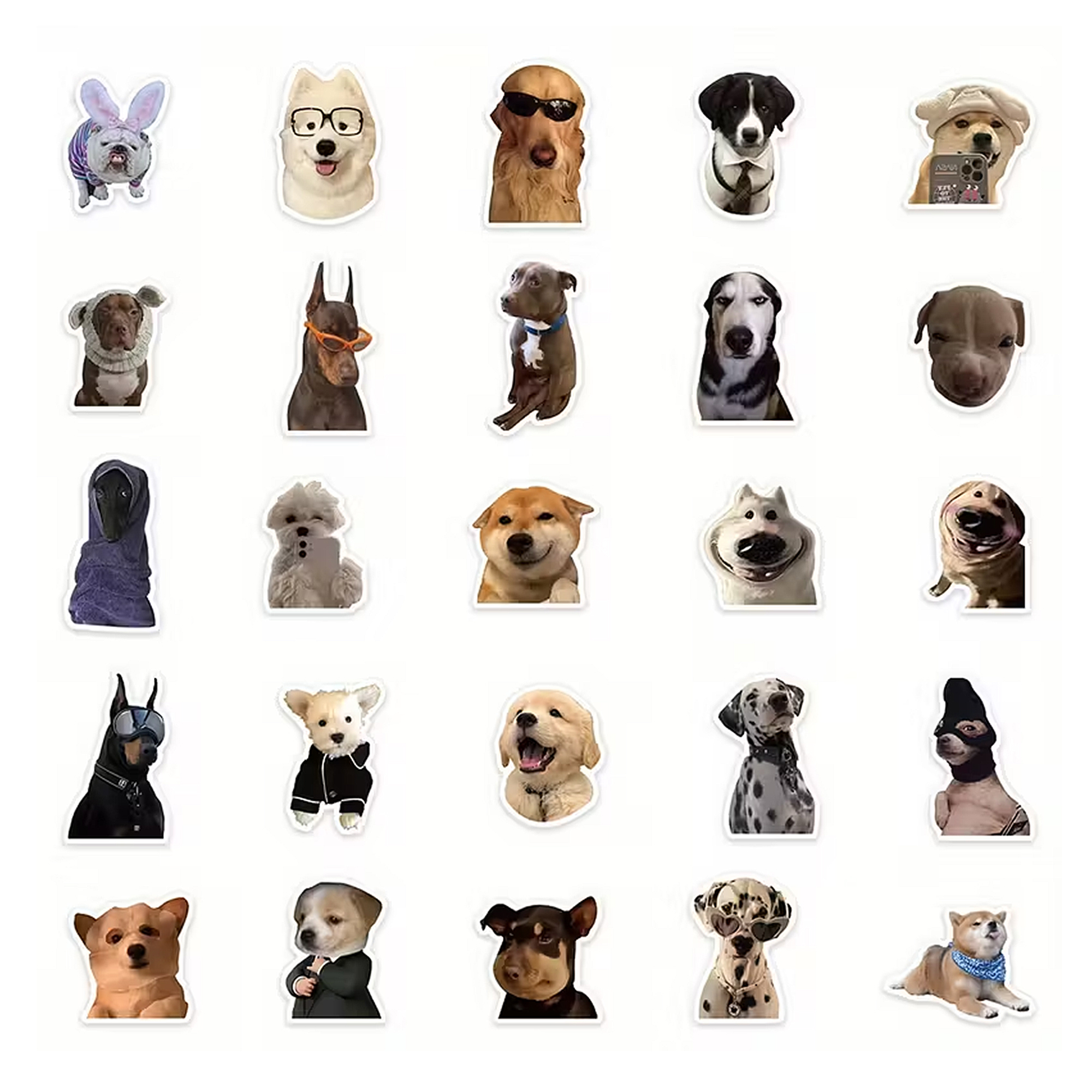 Das Hunde Sticker Set enthält 50 unterschiedliche Hundemotive und eignet sich sowohl für kreative DIY Bastelprojekte als auch für die Dekoration verschiedenster Gegenstände. Die lustigen Hunde Sticker begeistern durch eine Auswahl verschiedener Rassen und lustiger Dog Memes Aufkleber.