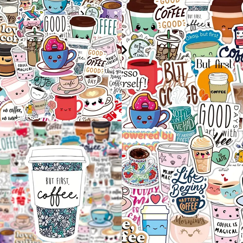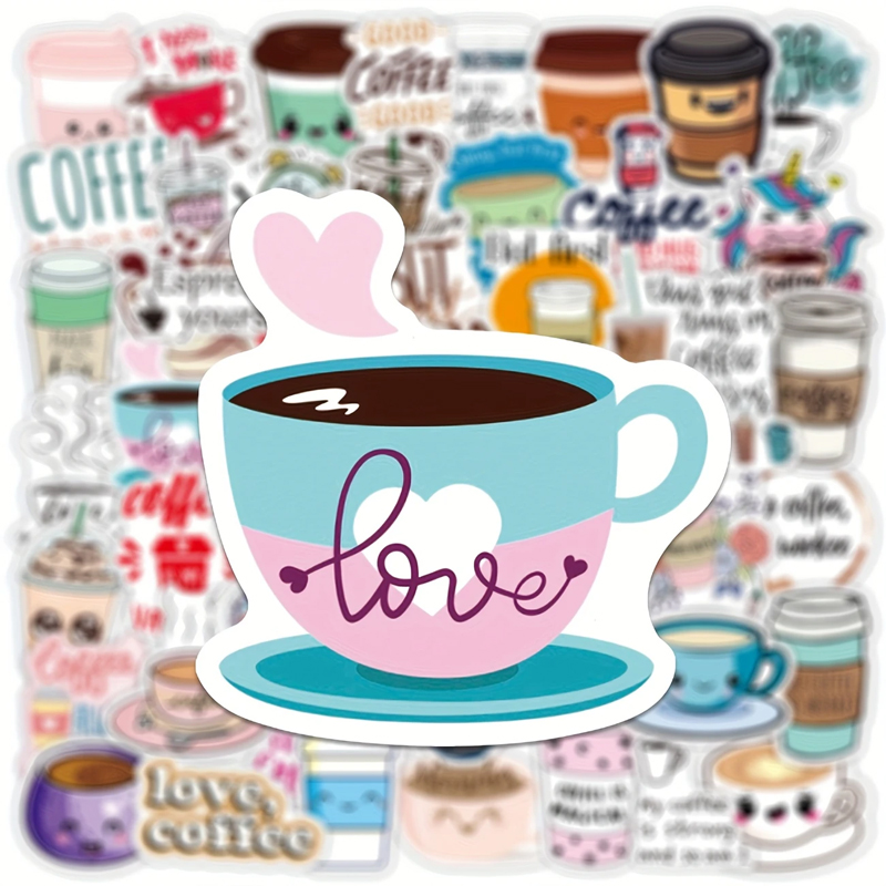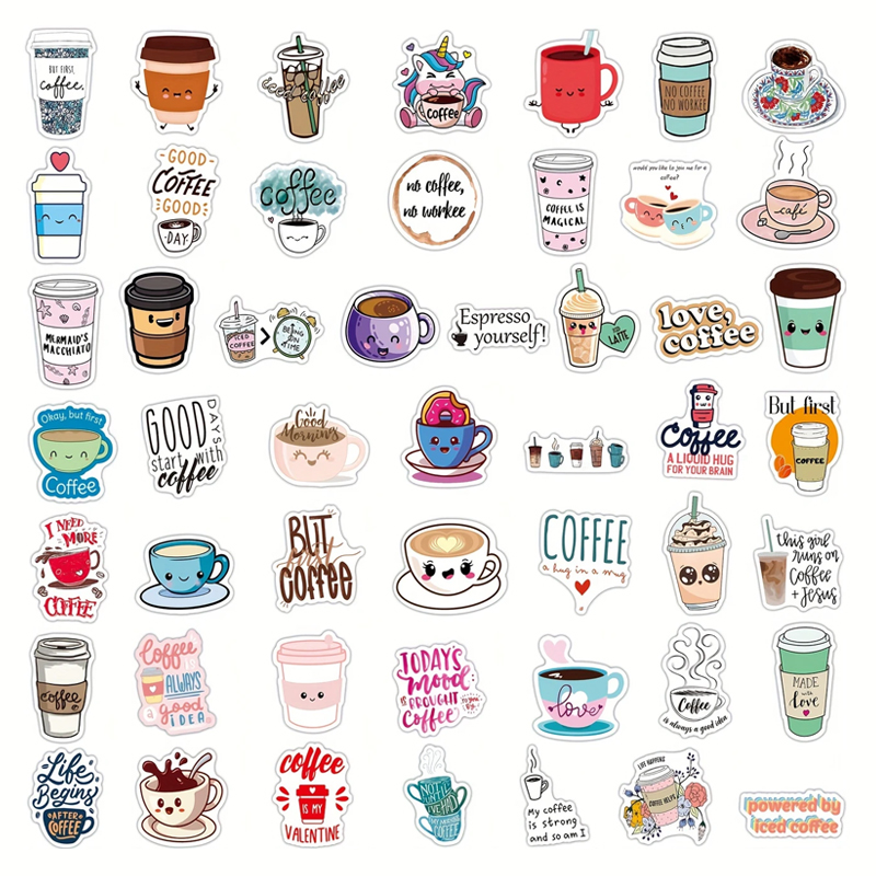 - Set enthält 50 unterschiedliche Sticker mit Kaffeemotiven.