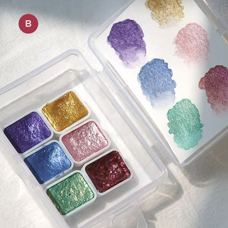 Metallische Wasserfarben Set – 6er-Box mit schimmernden Farben