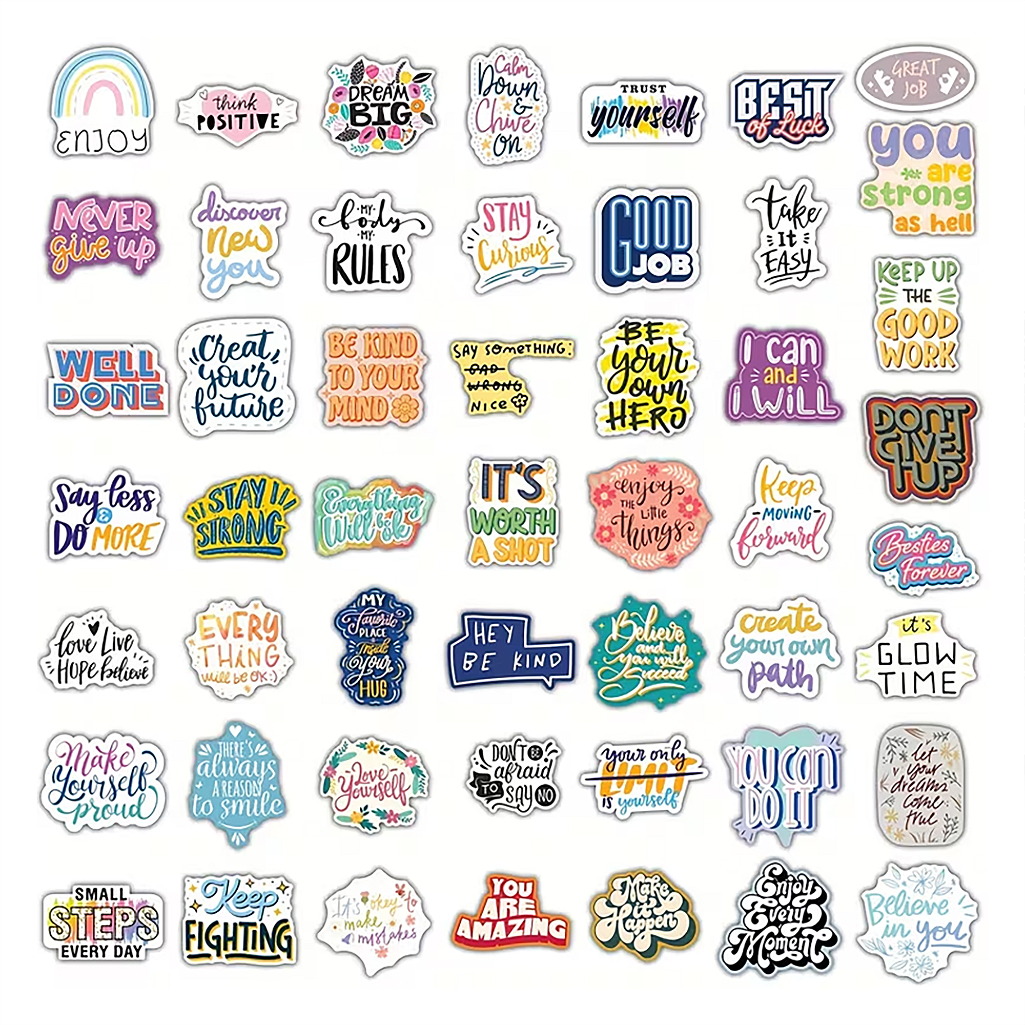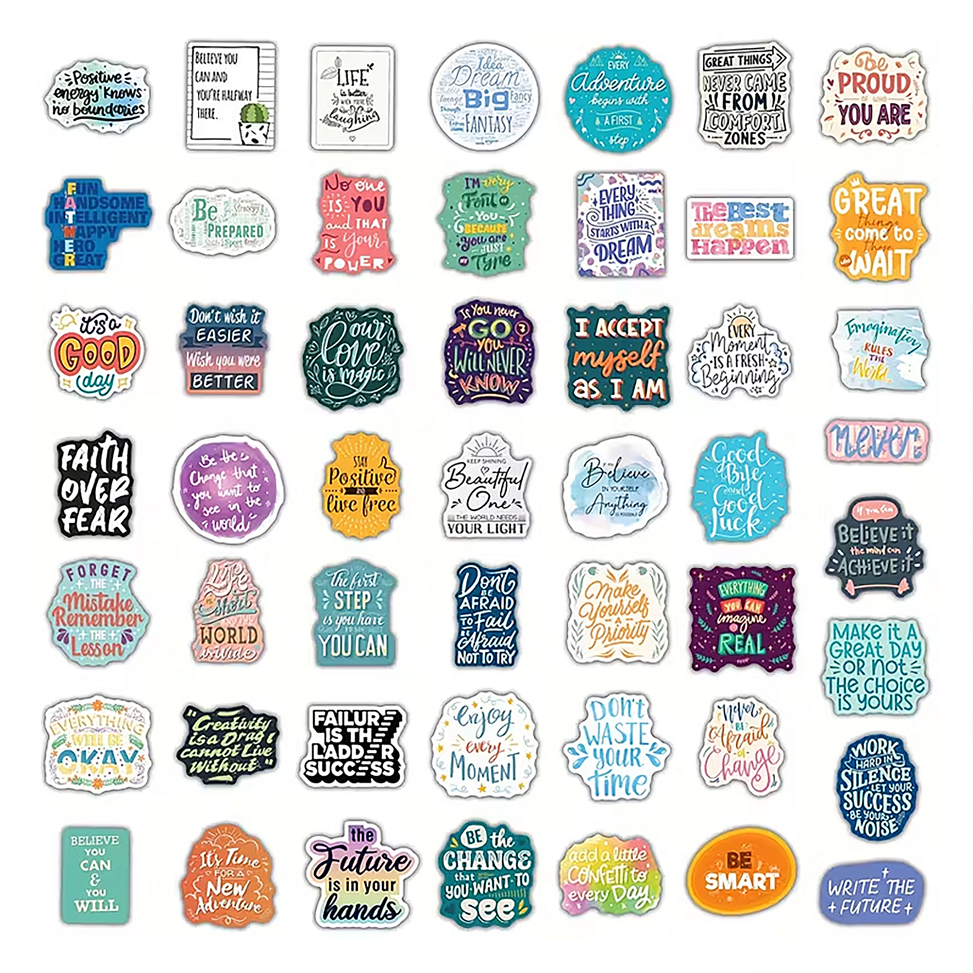 Motivierende Sprüche Sticker – 50-teiliges wasserfestes Vinyl Set