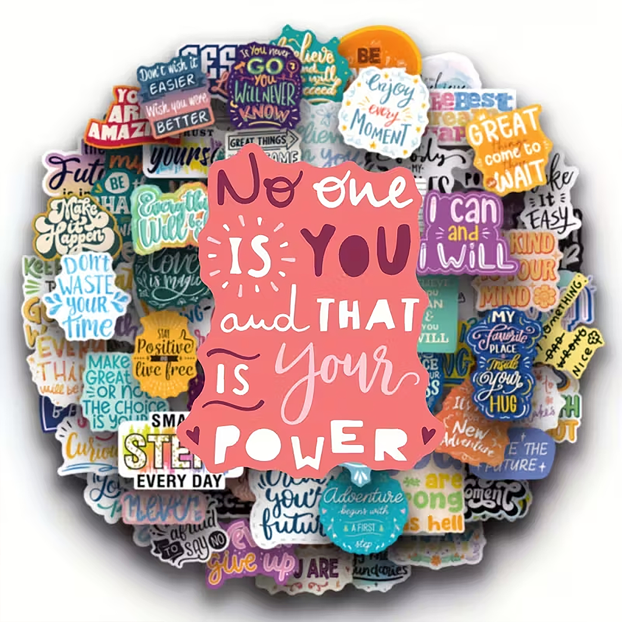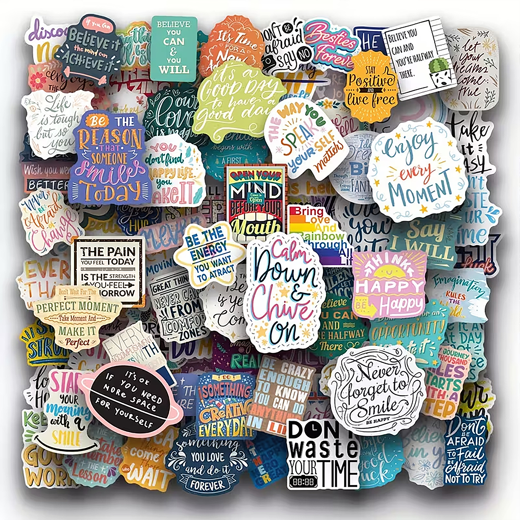 - Jeder Sticker zeigt einen positiven, motivierenden Spruch