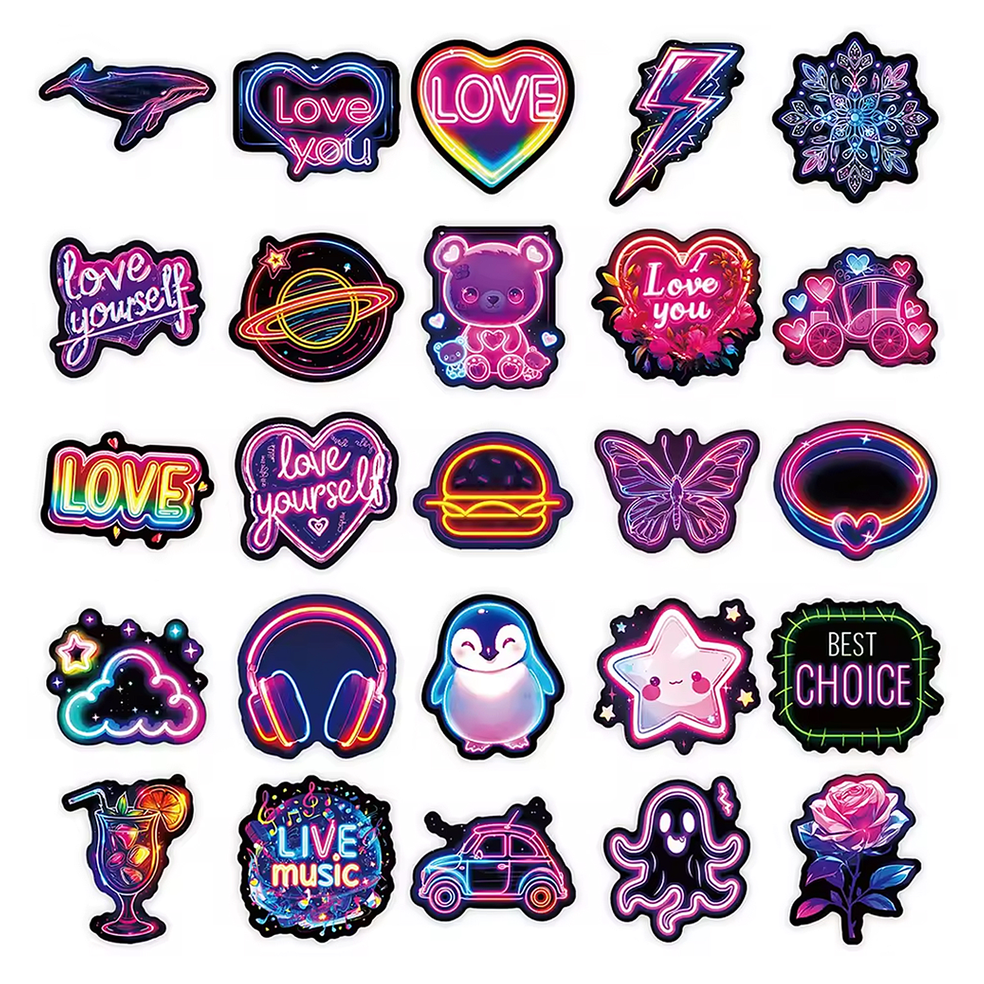 Dank des neon sticker set Designs sind die Motive leuchtend und ein Blickfang auf verschiedensten Gegenständen. Auch als geschenkideen stickers oder als mitgebseltüten sticker für besondere Anlässe eignen sie sich hervorragend. Die Sticker können auf Laptops, Notizbüchern, Trinkflaschen oder Skateboards angebracht werden und sorgen für einen individuellen Look.