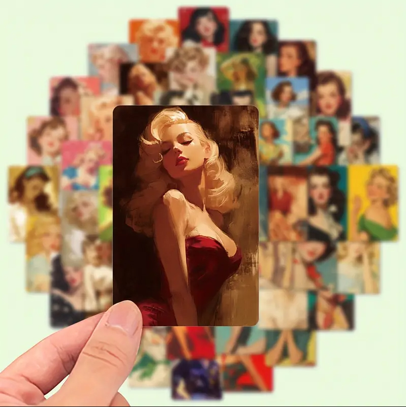 Retro Pin-up Sticker Set – 50 wasserfeste Vinyl-Motive