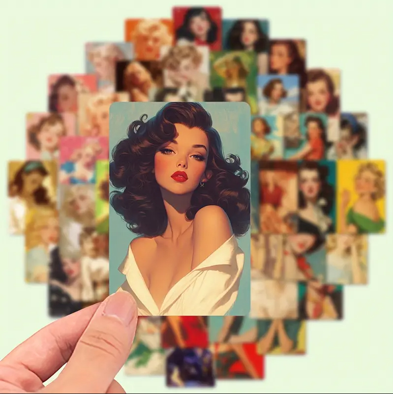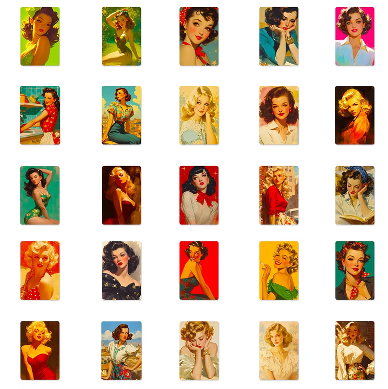- Set mit 50 verschiedenen Retro-Damen und Pin-up Motiven.