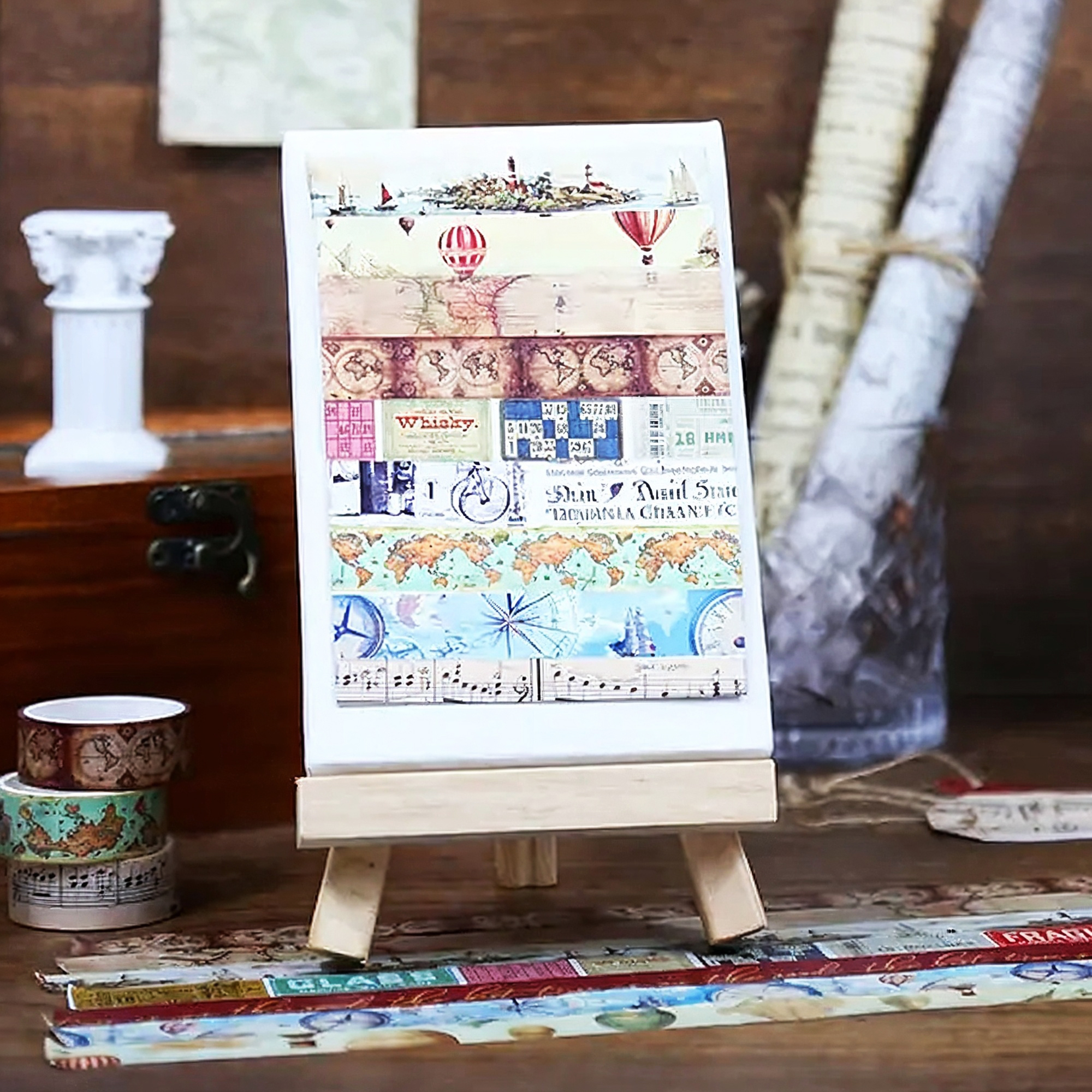 Kreatives Klebeband mit Reise-Motiven für vielseitige Anwendungen