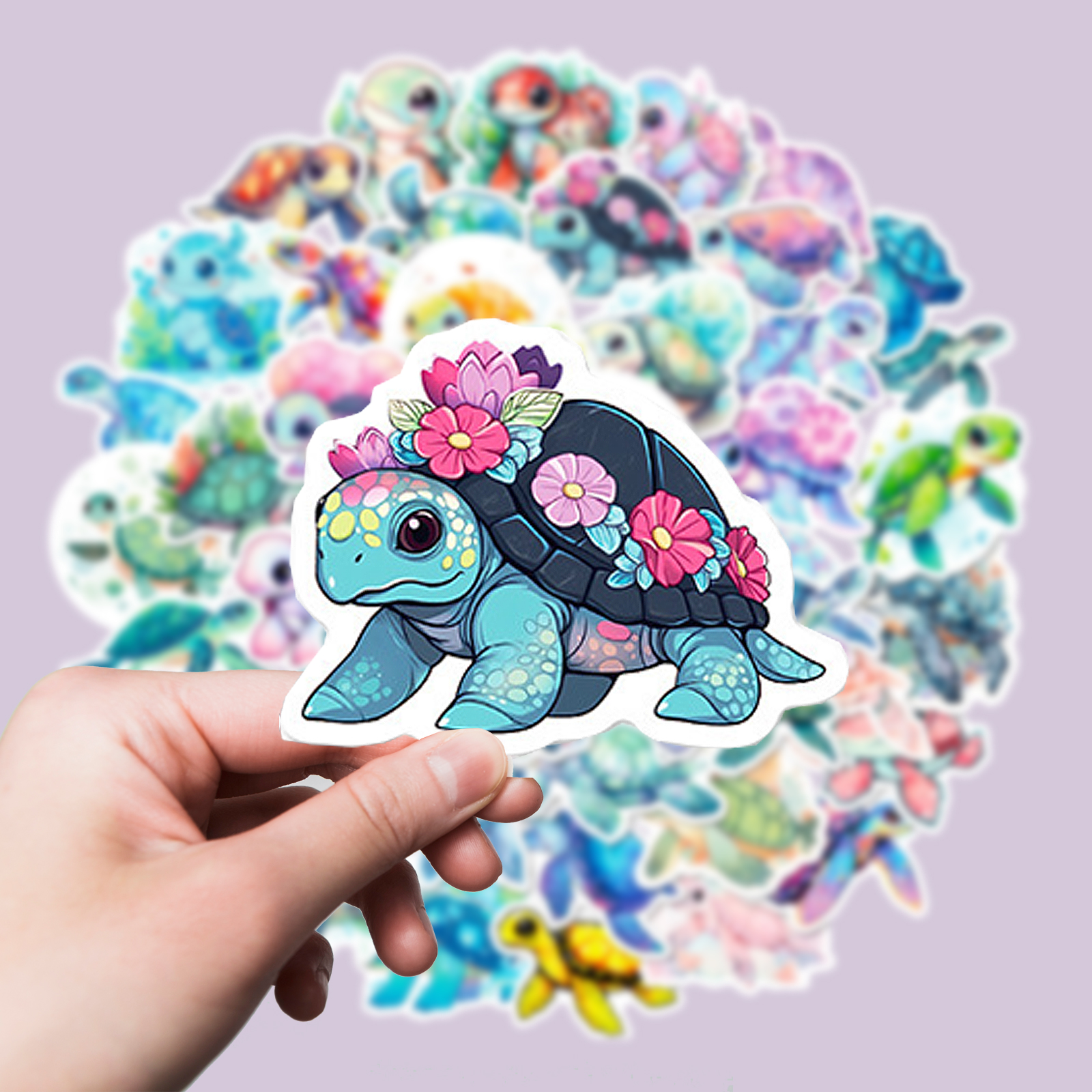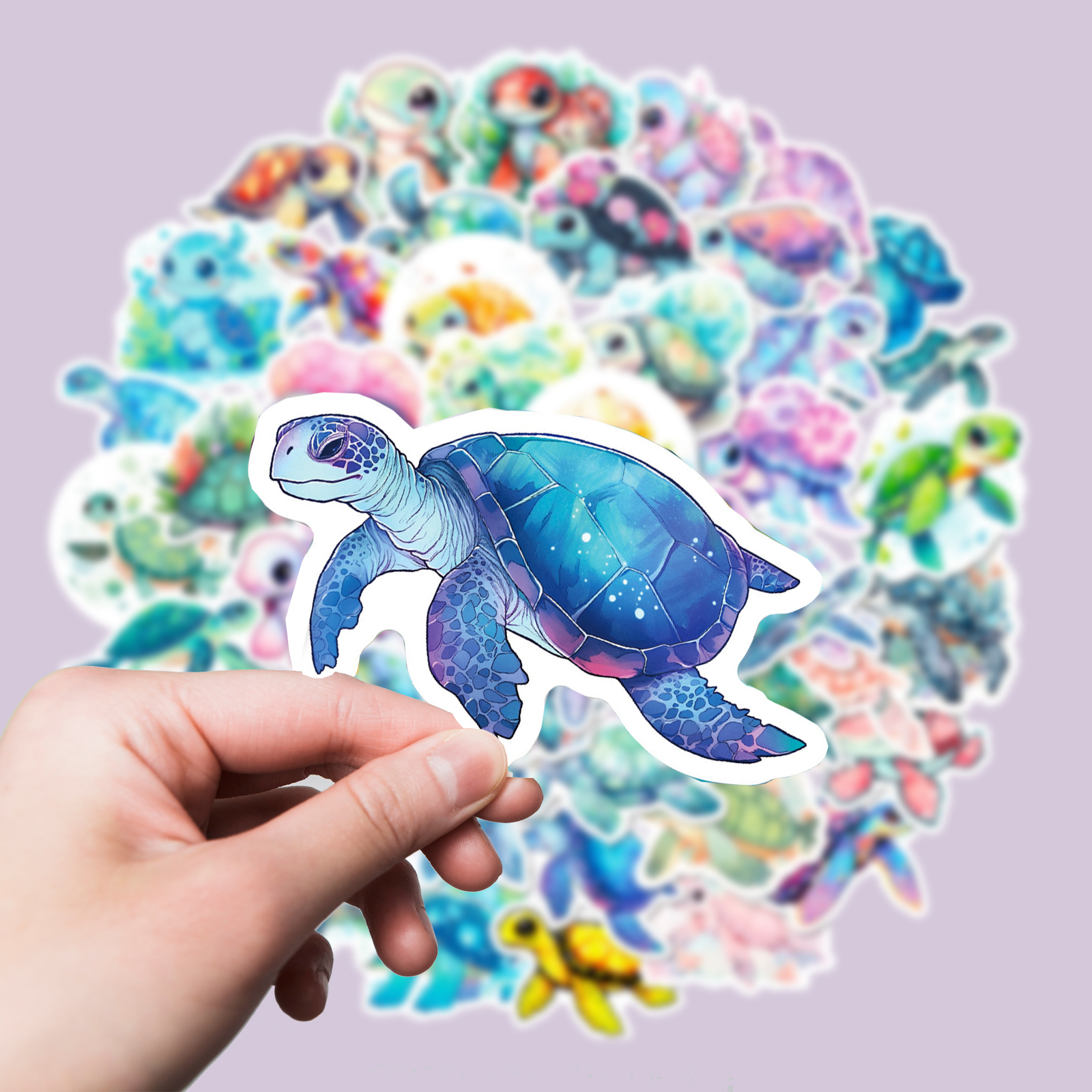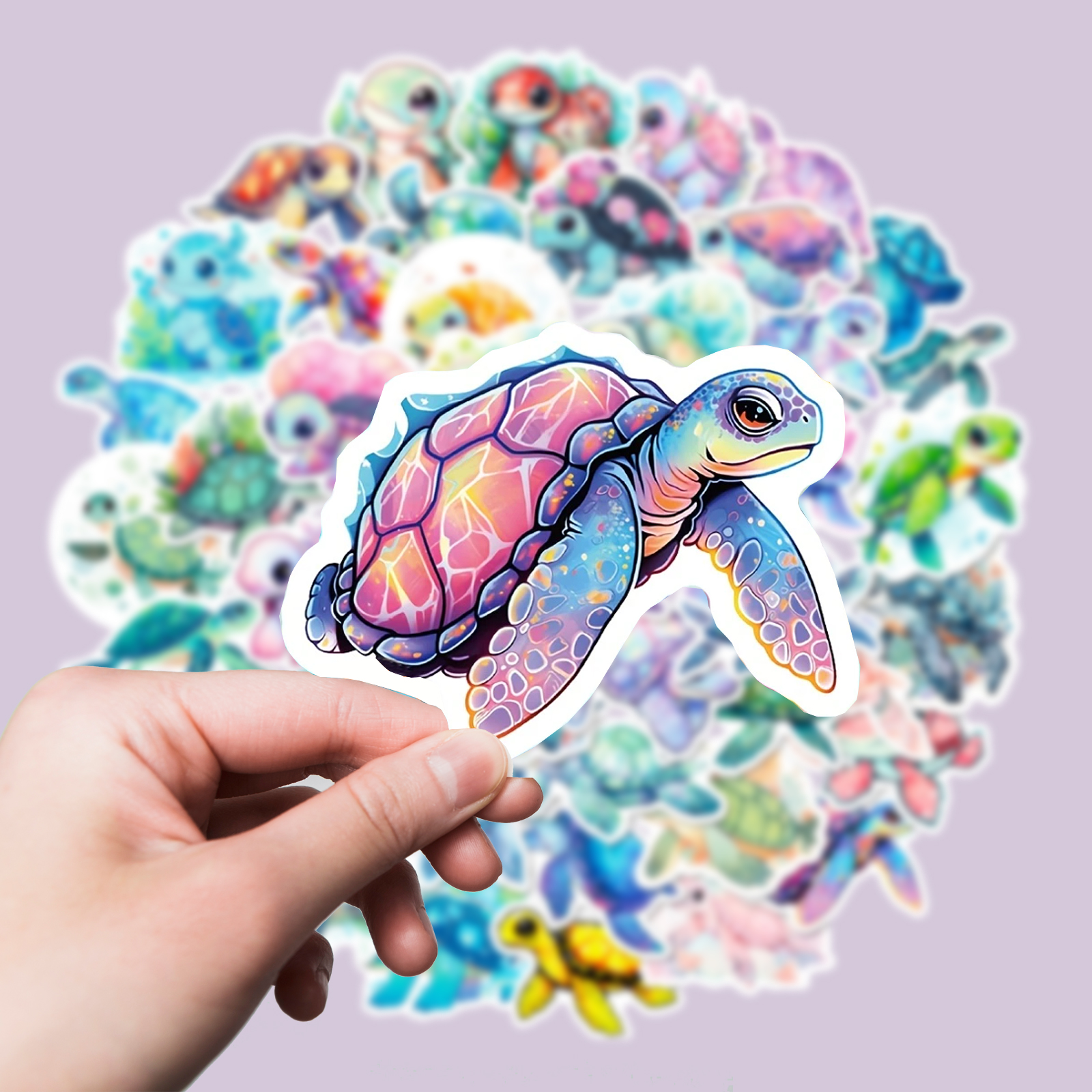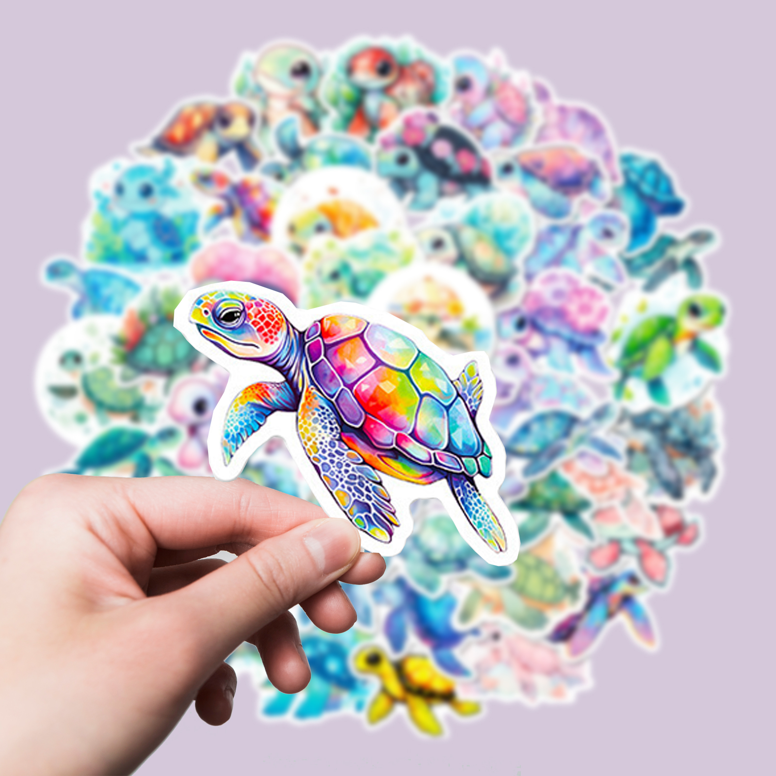 - 50 Sticker pro Set, je mit individuellem Schildkröten-Motiv