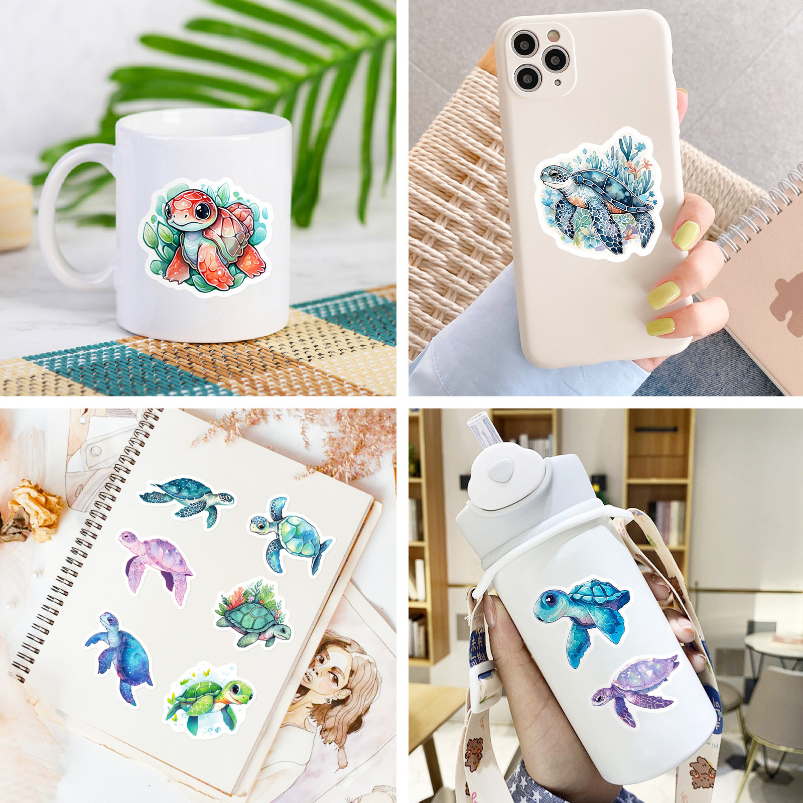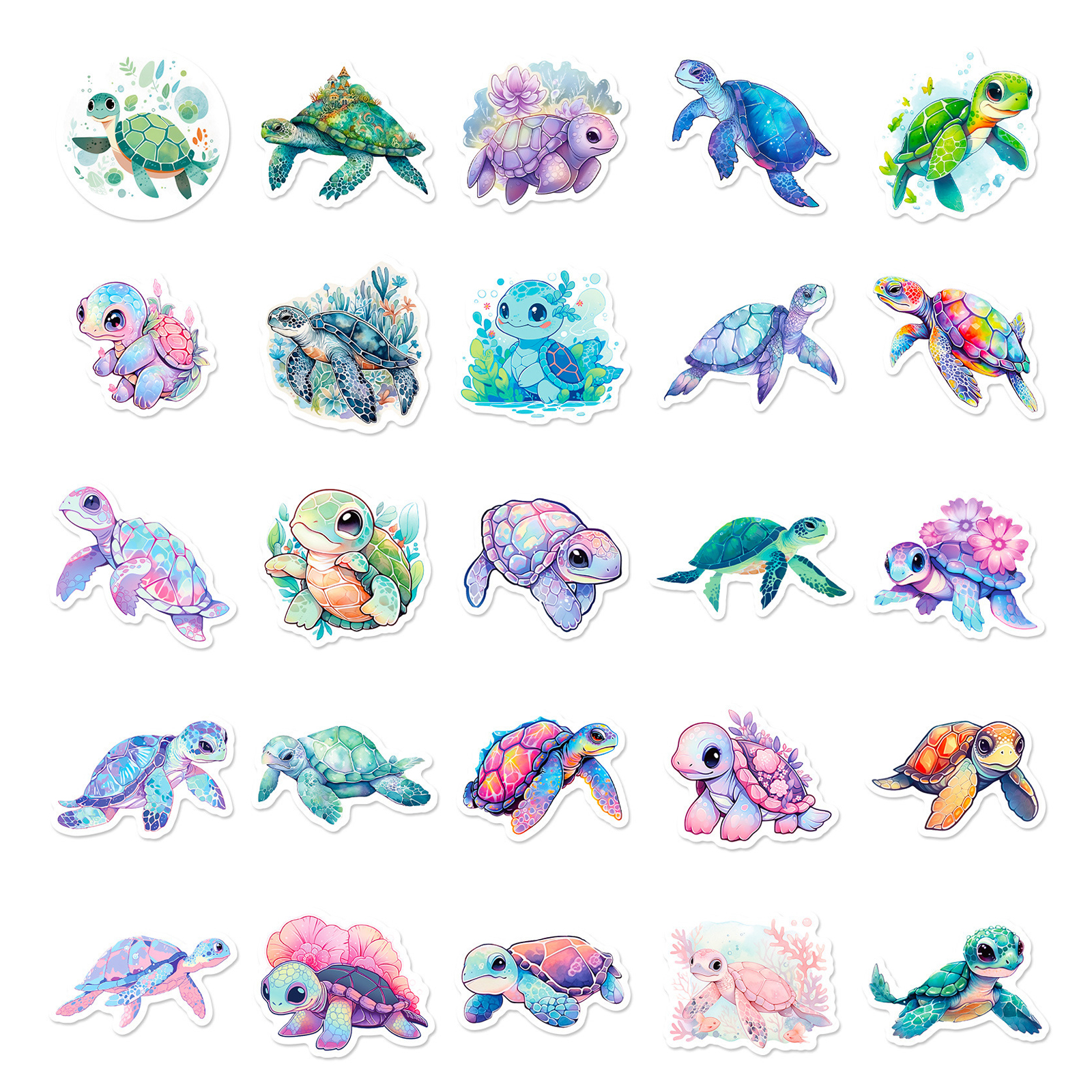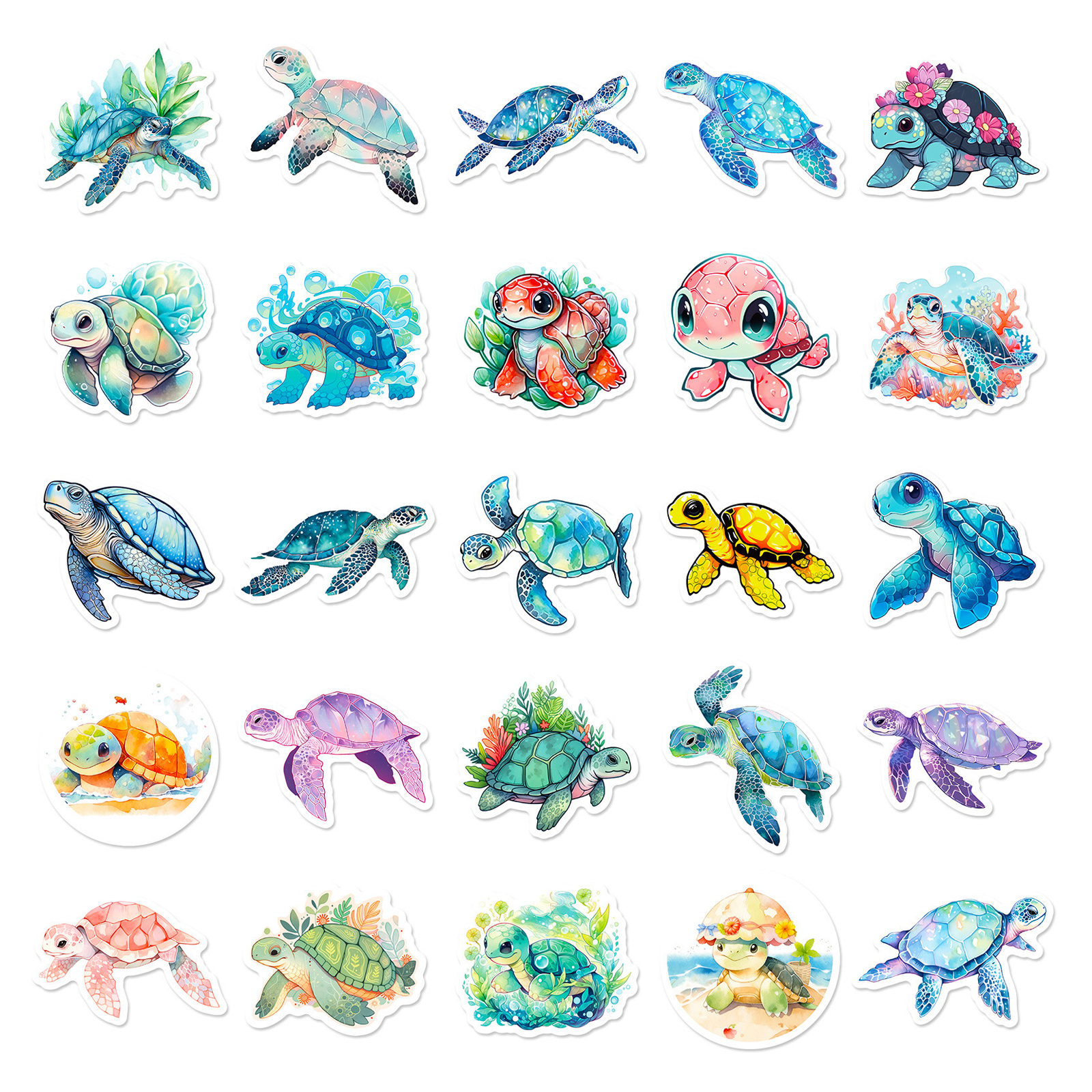 Schildkröten Sticker Set – 50 bunte Cartoon Vinyl Aufkleber