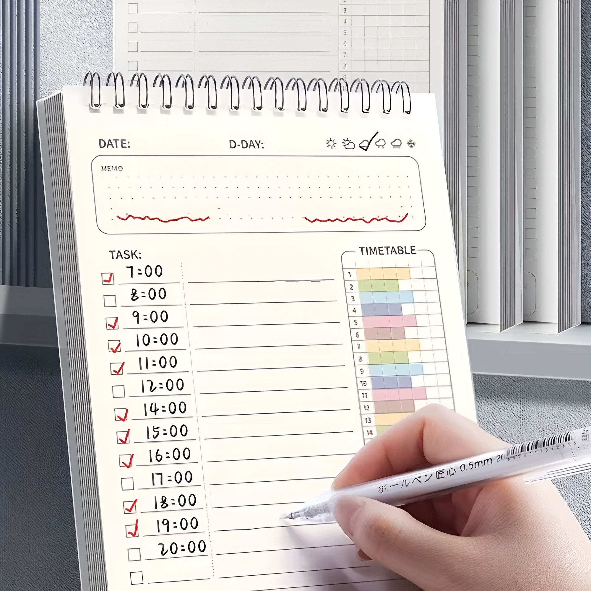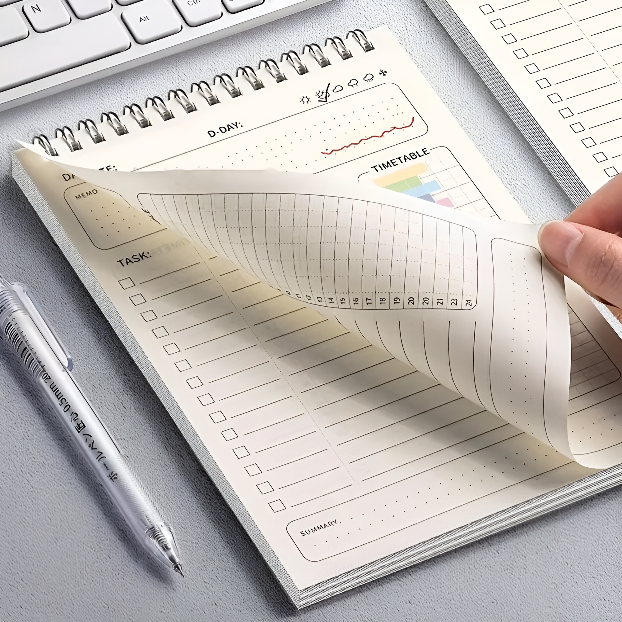 Effiziente Tagesplanung und Büroorganisation im handlichen Spiralplaner A5 Format.