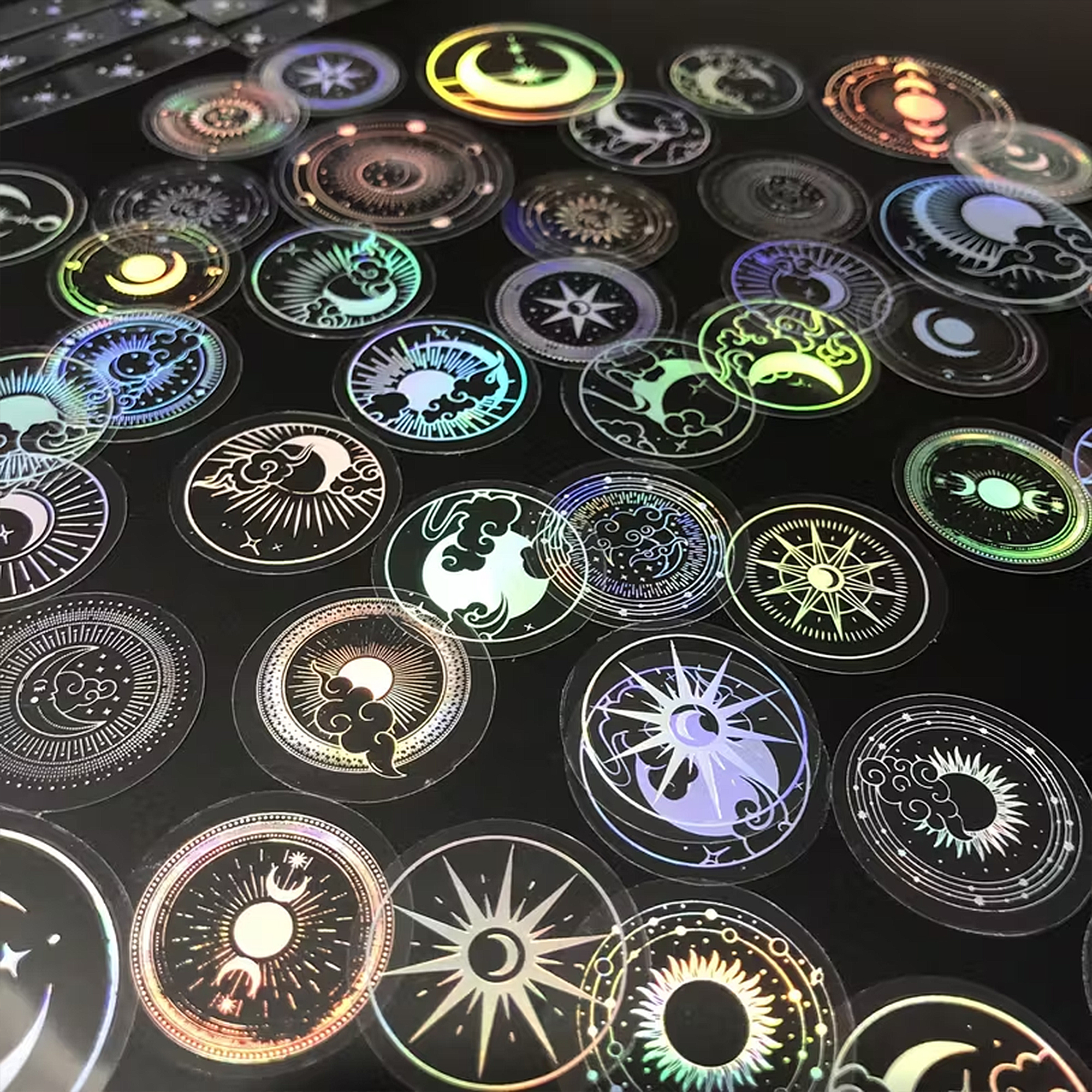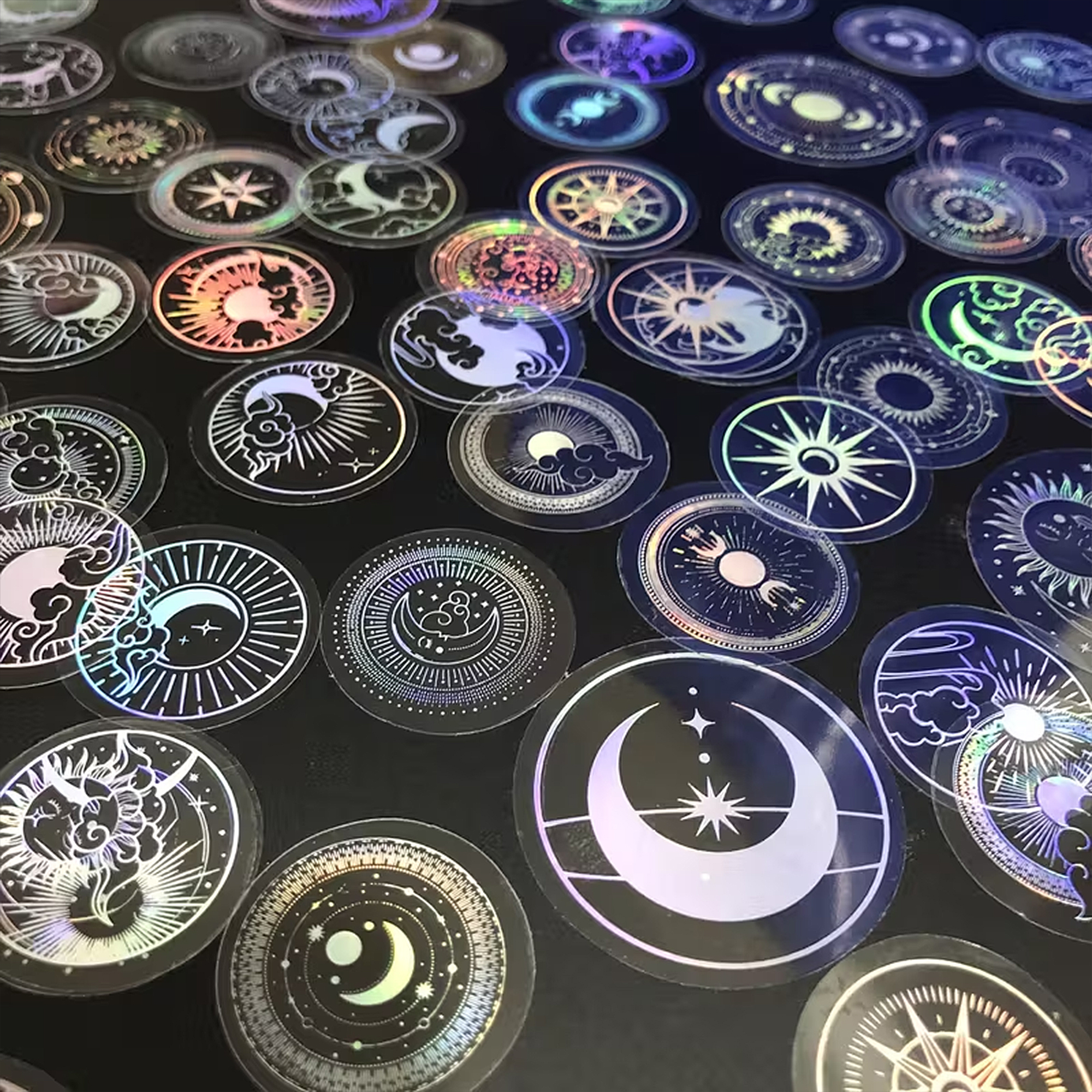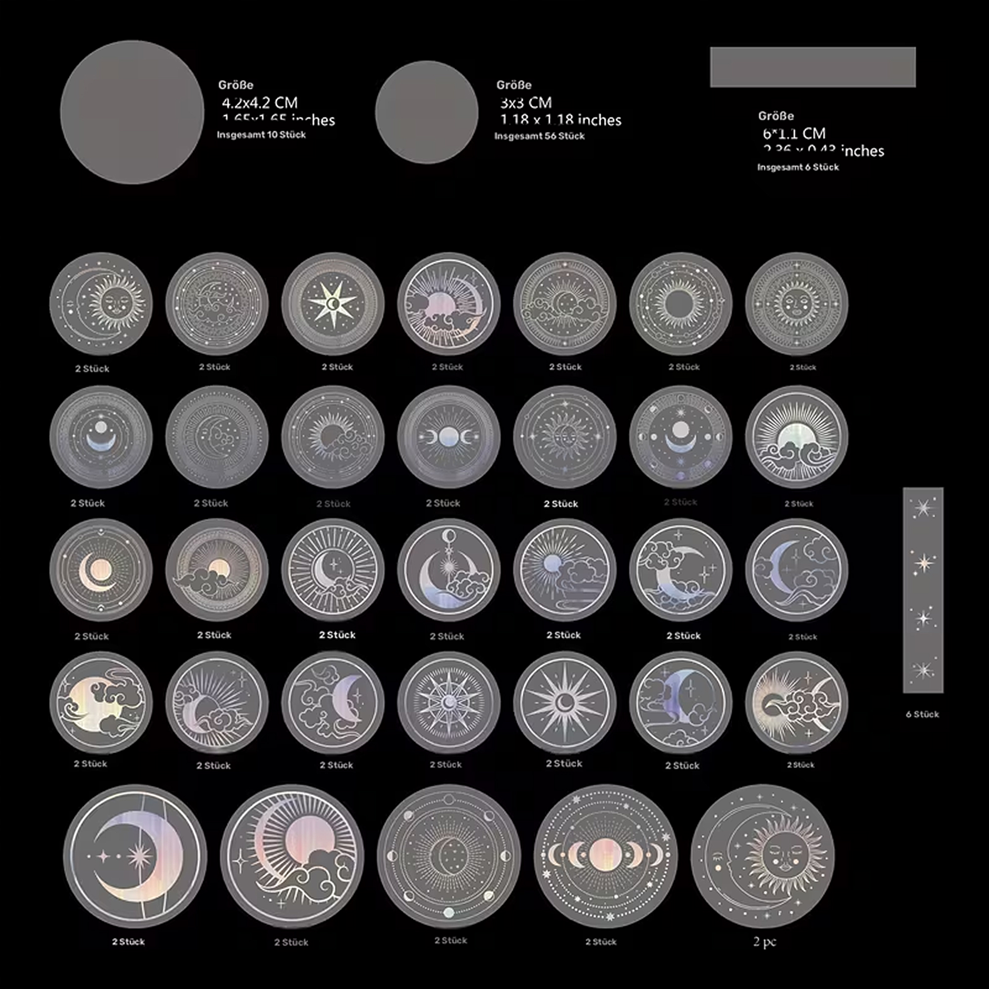 Transparente Holo Sticker Set – 70 PET-Folie Aufkleber mit Mond, Sonne & Sternen