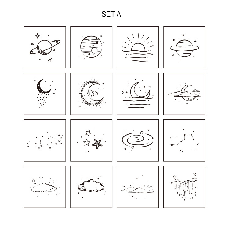 - Enthält 16 verschiedene Weltall-Motive wie Sonne, Mond und Sterne.